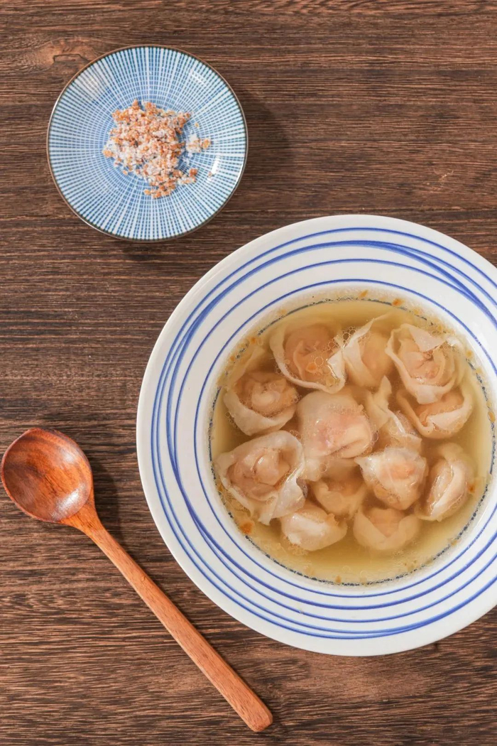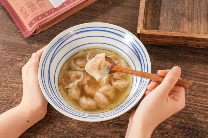 有个小知识,是区别干湿燕皮的重要标志:包法。这款肉燕采用的是正统的元宝形状(稍微展开点就形似飞燕),元宝也寓意着祝每个人财源广进呦。
