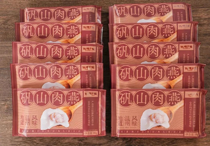 湿燕皮做的肉燕,一定要做成托盘盒装才能不让肉燕粘在一起。而这次,为了保证肉燕更好的口感,直接采用颗粒装,一盒15个,每个都有独自的位子,锁鲜护味更周全。