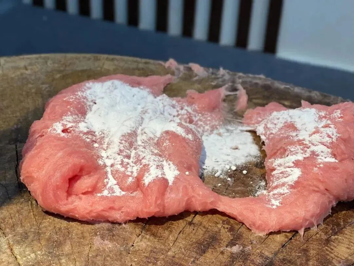 用料当然也不能马虎,凌晨现杀猪肉,然后专挑上好的猪后腿精肉收入囊中,趁肉的余温还在,将筋膜肥肉一一剔除。只有这样,最终成型的肉燕才能做到万里挑一的味道。