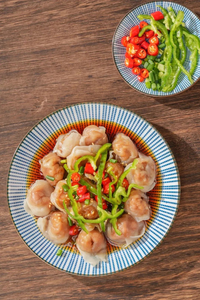 把肉燕煮熟后控水捞出,加些辣椒和凉拌汁,夏天来上一碗,清清爽爽吃肉;
