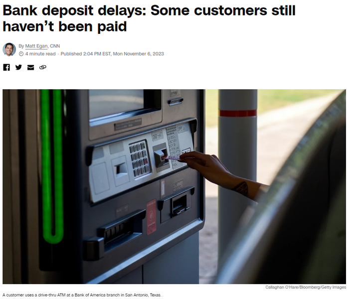 涉事银行向客户强调,所有资金都是安全的。没能顺利到账的付款需要重新提交,这一过程需要些时间。CNN称,美国联邦监管机构正在密切关注该问题,但尚不清楚这种影响的持续范围有多广,也不清楚所有客户需要多长时间才能收到存款。