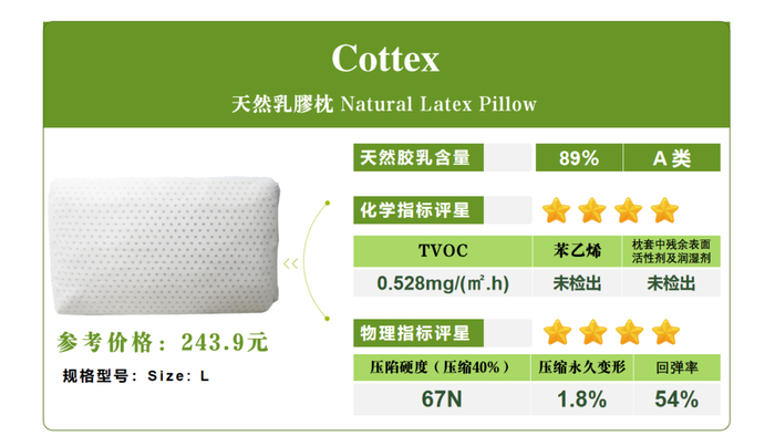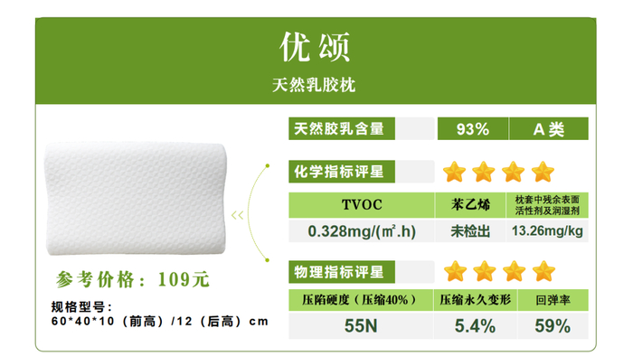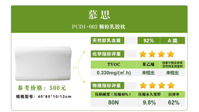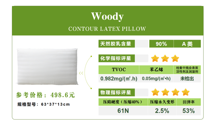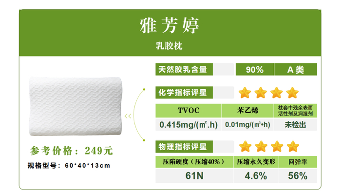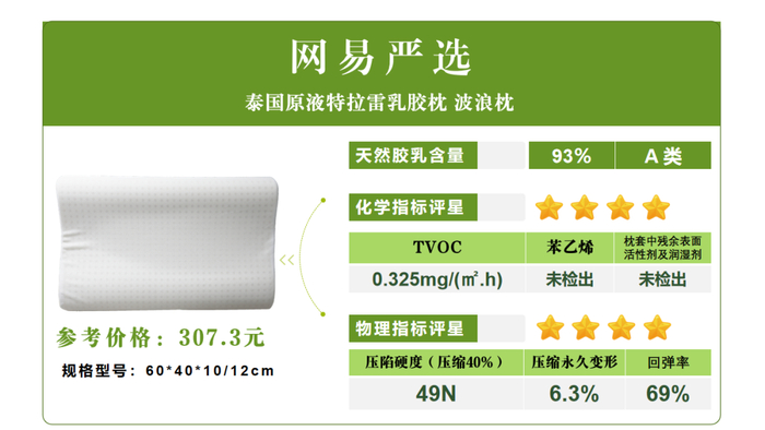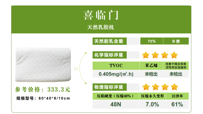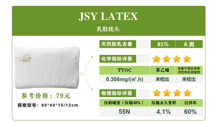 备注:乳胶枕的软硬度、舒适度与个人的生活习惯、头部重量、肩宽、颈椎健康状况等有关,建议消费者亲自试用后按需选择,以上指标测试结果仅供参考。