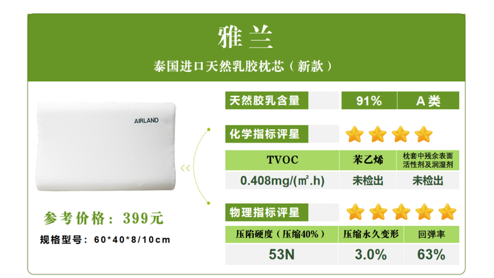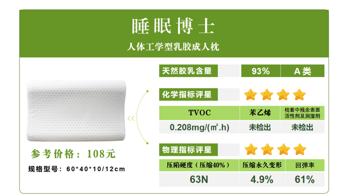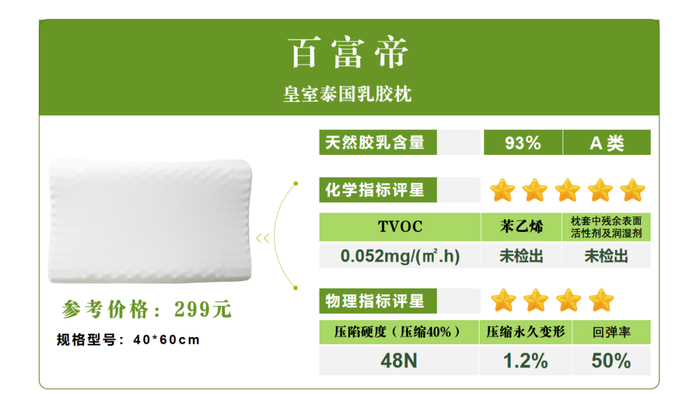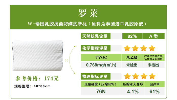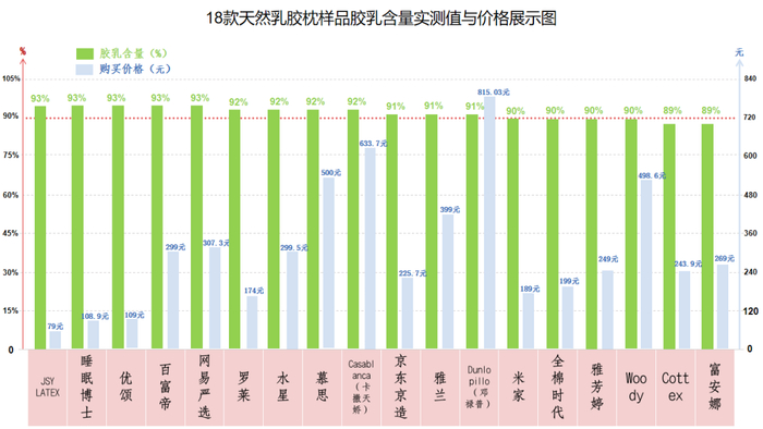从本次测试结果可以看出,较好的乳胶枕其天然乳胶含量在88%-93%之间,因此消费者不必一味追求更高含量的乳胶枕。