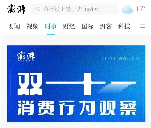 11月6日,《澎湃新闻》发布“双十一消费行为观察”,数据显示,今年“双十一”消费者行为和态度仍然呈现出对低价优势的看重,但同时也追求质量保证,特别是在食品和数码电子产品方面。综合考虑商品、价格、服务等各种因素时,受访者最偏好京东作为首选购物平台,占比达41.38%。