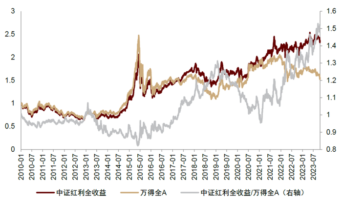 注:微盘超额收益为国证2000指数相对于万得全A指数的相对收益;红利超额收益为中证红利指数相对于万得全A指数的相对收益;统计区间为2010/01/01至2023/09/28