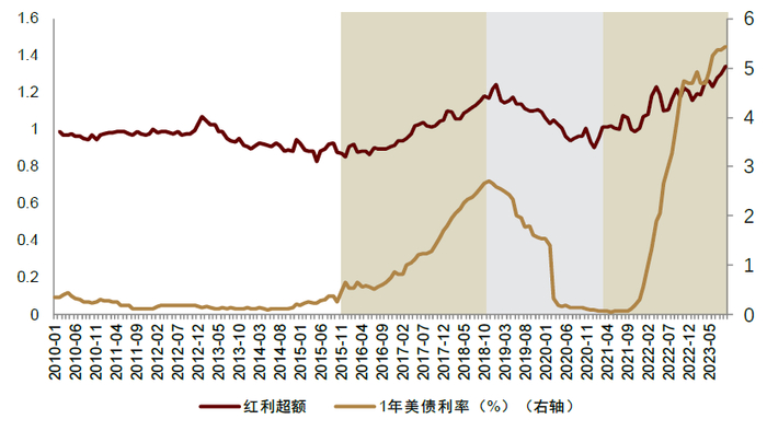 图表9:红利相对净值与1年美债利率呈正相关