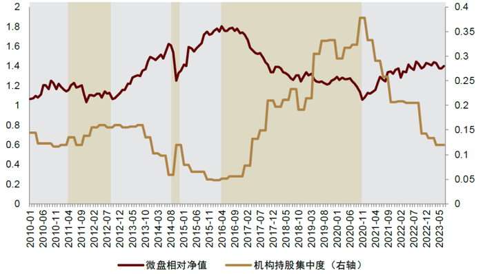 图表8:微盘相对净值与机构持仓集中度呈负相关