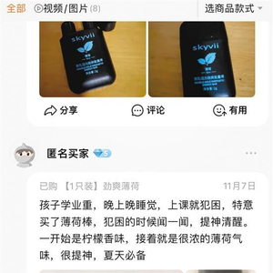 “在上课昏昏欲睡或是鼻塞的时候塞入鼻孔,可以提神醒脑、清凉通气。”“孩子学业重、晚上睡觉晚,上课就犯困,特意买了薄荷棒,让他犯困的时候闻一闻,能提神清醒。”从消费者评价看,确实有不少学生购入,还有家长专门买给孩子使用。