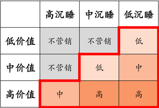 如何把有限的资源聚焦到高净值客户上?段治龙提出了一种客户分层分类的方法,可以按照沉睡情况和价值高低,来确定唤醒对象。