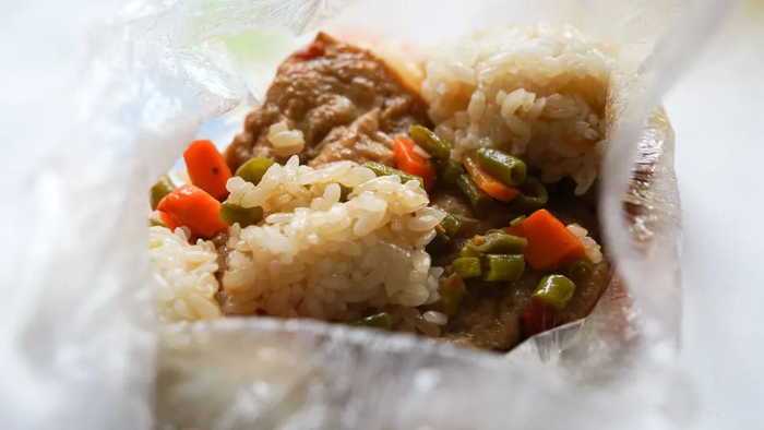 再包上用猪肉、木耳、胡萝卜等制成的馅料