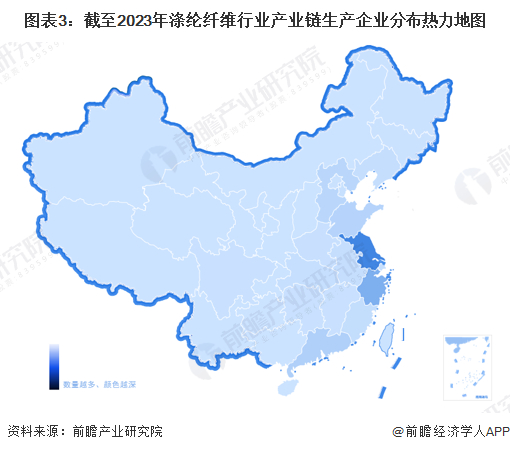 涤纶纤维行业产业链区域热力地图:广东和江苏分布最集中