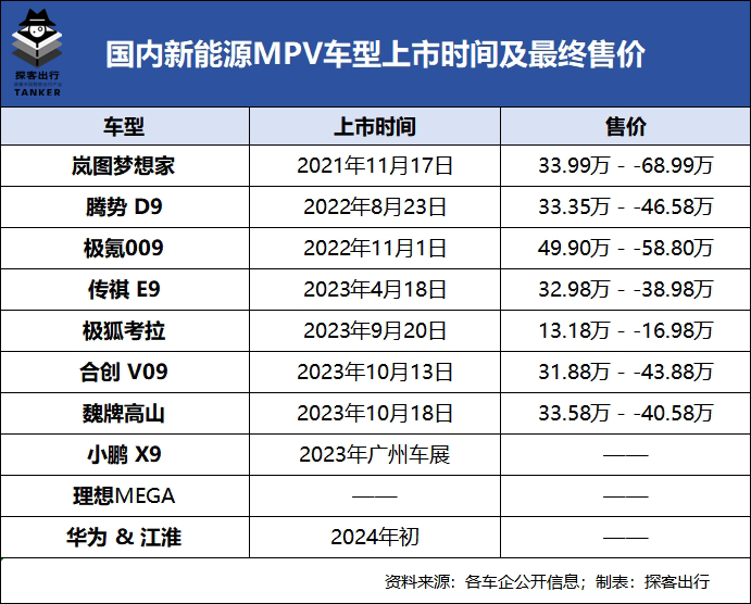 腾势D9、传祺E9、合创V09、魏牌高山……一众自主品牌新能源MPV也在死守30万价位。