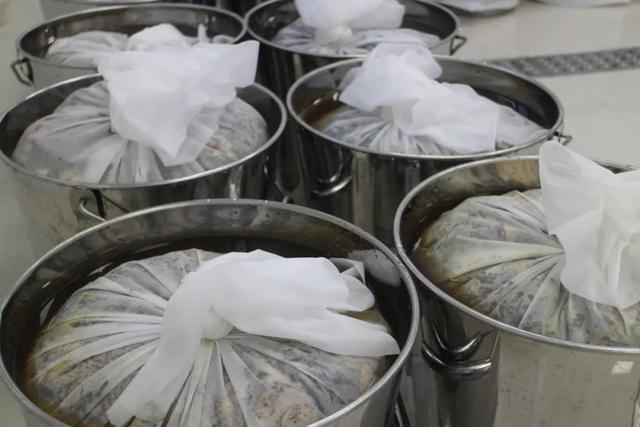 浸泡是煎膏加工的第一步。药材浸泡充分会使药效更好地发挥,同时对加工用水、卫生环境等都有严格的要求。目前按规定可以用自来水,而该中心使用的是纯净水。