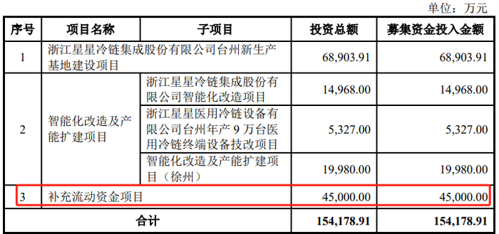 招股书显示,浙江星星冷链集成股份有限公司(下称“星星冷链”)是一家冷链设备制造商,为客户提供商用、商厨、家用及医用等制冷设备和产品,也是冷库工程建设服务及配套设备提供商。公司原拟在上交所主板公开发行股数不超过16130万股,募集资金15.42亿元,因负债率高企其中三成拟用来补充流动资金。