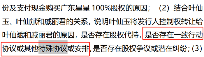 另外,叶仙玉是否仍然实际控制星星冷链的生产经营,叶仙玉未认定为共同实际控制人的依据及其合理性也被问及。