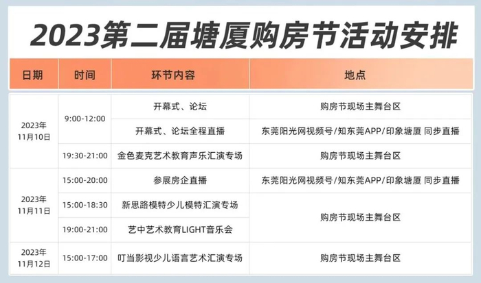 深圳新闻网2023年11月8日讯(记者 杨平)11月10日—12日,由塘厦镇人民政府倾力主办“安居塘厦·圆梦湾区”2023第二届塘厦购房节论坛活动将在华堂大厦广场举行。