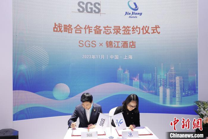 11月7日,SGS与锦江酒店在第六届进博会现场举行战略合作签约仪式,宣布双方将聚焦在酒店可持续发展基准(Hotel Sustainability Basics/HSB)验证、推动本土酒店可持续发展转型、绿色高质量发展等方面开展合作。申欣摄