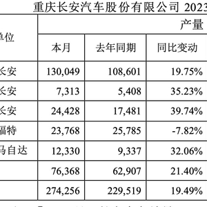 截止2023年10月底,长安汽车共实现销量211.06万辆,同比增长10.76%;其中,自主品牌销量174.77万辆,同比增长15.93%;自主乘用车销量134.10万辆,同比增长22.06%;自主品牌海外销量19.69万辆,同比增长26.17%。