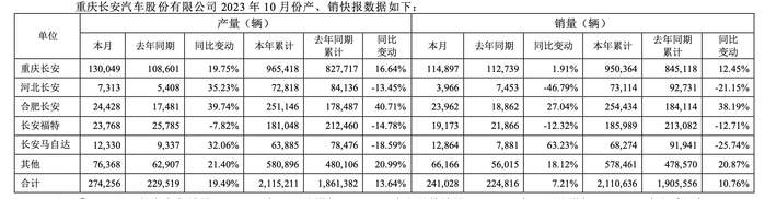 [公司]长安汽车10月销量超24万辆 新能源汽车产销数据亮眼