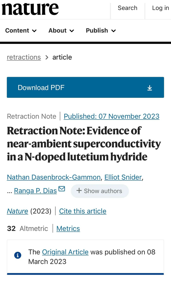 更乌龙的是,这已经不是Ranga Dias第一次被《自然》撤稿。