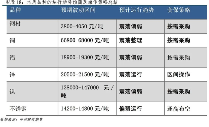 行情展望:宏观情绪改善,基本面偏弱。预计12合约下周波动区间18900-19300元/吨,操作上,区间内高抛低吸。