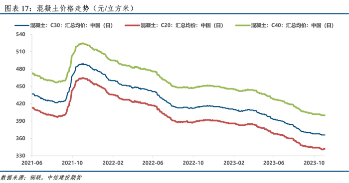 本周塔筒相关材料价格稳中有涨。钢材类中,中板(普20mm)环比上涨50元/吨,法兰片纵横丰南采购价环比较上周持平,大法兰片安丰钢铁采购价较上周上涨20元/吨。混凝土价格较上周环比上涨1元/立方米。本周中板(普20mm)上海价格3840元/吨,法兰片纵横丰南采购价为2870元/吨,大法兰片安丰钢铁采购价为2840元/吨,混凝土C20汇总均价342元/立方米,混凝土C30汇总均价366元/立方米,混凝土C40汇总均价400元/立方米。