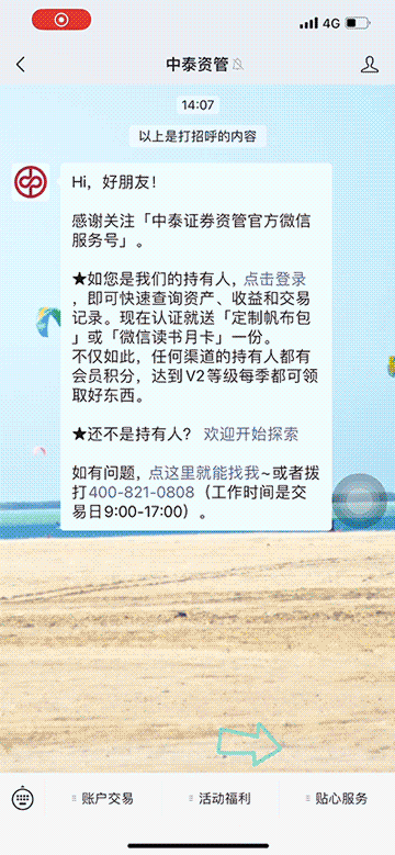 在服务号上既能买到公司旗下的各类公募基金及集合产品,还能专享部分只在这里可买的产品。