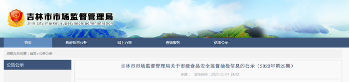 吉林省吉林市市场监管局公示市级食品安全监督抽检信息(2023年第25期)