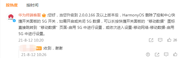 当时,华为终端BG CTO李小龙回复表示,去掉5G下拉快捷开关是中国三大运营商的统一要求,因为运营商发现很多用户买了5G手机但又关闭5G开关在用。