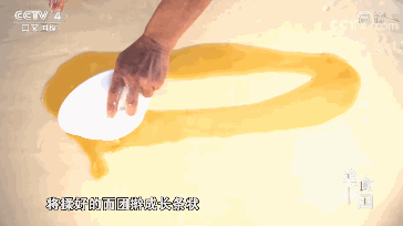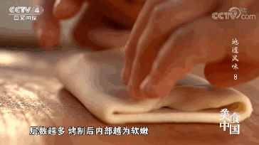 将揉好的面团擀成长条状,涂一层驴油,撒上面粉,使其能够层层分离,通过手腕间的拉扯,把面团卷成宛如长龙一般的形状,揪捏分割,反复碾压折叠,这将决定饼内部的层数,层数越多烤制后内部越为软嫩。