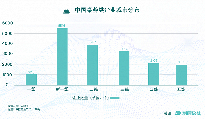 县城们几乎共享相似的处境。据天眼查数据显示,截至2023年10月,中国注册的桌游类企业数量共有17652家,其中二线城市以上就占据了超10000家,而二线及以上的城市数量仅有49个。剩下的288个城市,则共享了剩余的7000家桌游类企业。