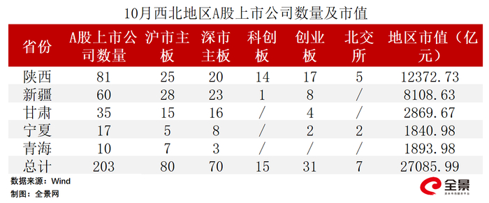 全景数据榜|西北地区上市公司10月概览(2023年)