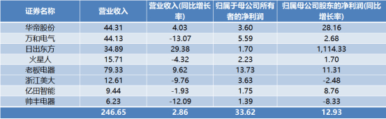 尽管厨电行业整体有所提升,但行业内部的分化现象明显,表现出强者恒强的局面。从同比增速上看,八家厨电上市企业中,仅华帝股份、老板电器和日出东方实现了营业收入的正增长。这三家企业的增长带动了整体上市厨电企业增长的势头。