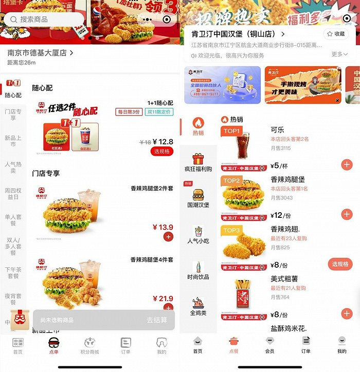 甚至如果你点进肯卫汀的点餐小程序,一定会更直观的看到肯卫汀与塔斯汀那99%的相似度。