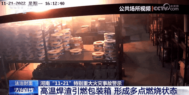 2022年11月21日,河南省安阳凯信达商贸有限公司厂房的火灾就是企业负责人违规操作电焊引发。火灾事故发生后,国务院火灾事故调查组通过调取火灾现场及周边的公共场所视频,询问事故相关人员和火灾亲历者,梳理并还原了起火、成灾经过。