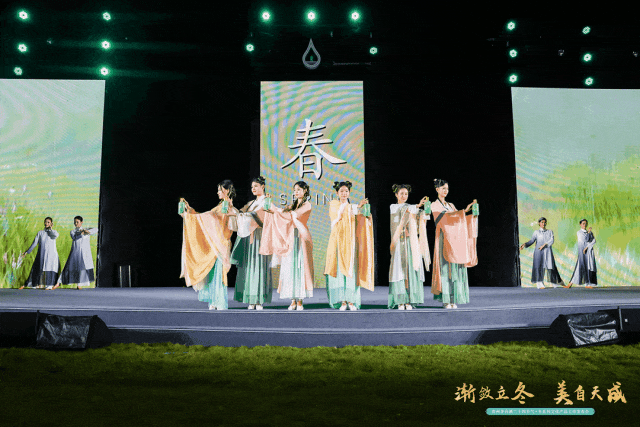 活动现场以时节为背景,演绎四季大观,通过灯光和新媒体技术等媒介,形成美轮美奂的视觉盛宴,充分展现中国特色文化底蕴以及文化浸润下的茅台之美,诠释了中国节气文化的万千气象之美和茅台二十四节气文化产品的蓬勃发展之美。
