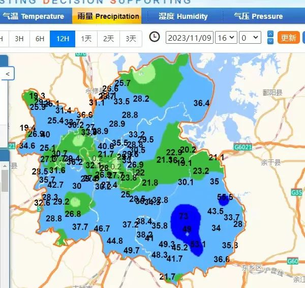 南昌出现中到大雨,局部暴雨。