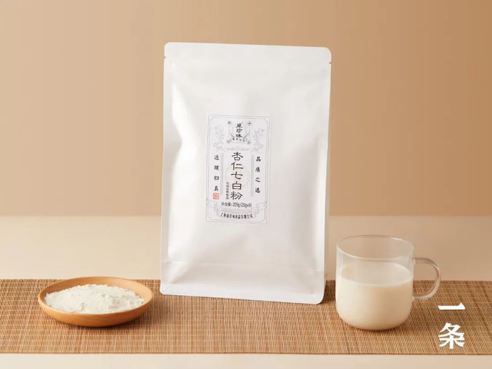 制好的杏仁七白粉,粉质细腻,而且经过了熟化处理,方便冲泡。
