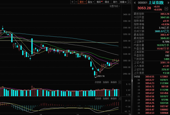 今早三大股指集体低开后,煤炭、石油、银行等权重板块拉升股指快速翻红,但减肥药、汽车产业链、消费电子等前期热点集体退潮,拖累股指震荡翻绿。11点后光伏板块率先拉起推动沪指再度翻红。午后股指维持窄幅震荡,但除去算力、半导体相对强势外,其余高位热点进一步展开补跌,大金融板块则力挺沪指微幅收涨。沪深两市今日成交额9625亿,较上个交易日缩量741亿。截至收盘,沪指涨0.03%,深成指跌0.2%,创业板指跌0.23%。