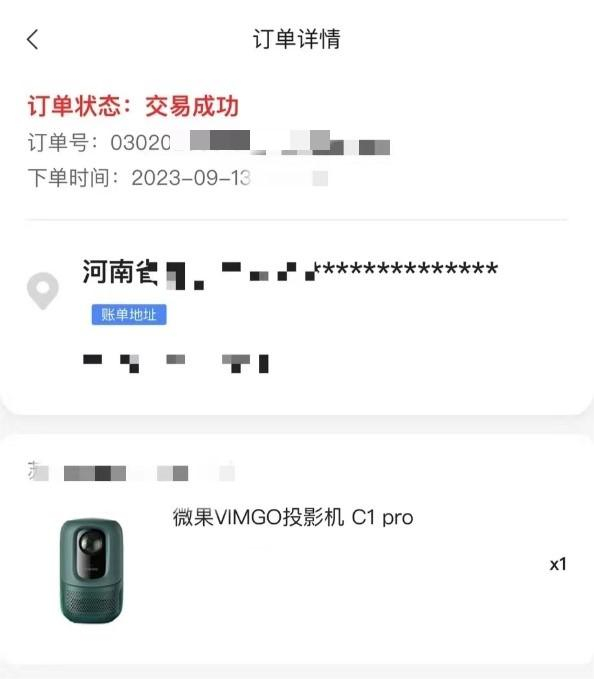 许恒告诉《消费者报道》,他在9月中旬通过某银行APP购入一台坚果的微果C1 pro投影仪,收货后正常使用。