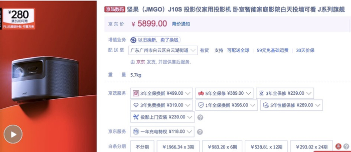 《消费者报道》在京东商城搜索发现,“坚果投影京东自营官方旗舰店”有519万多人关注,而李君购买的这款坚果J10S家用投影仪目前标价为5899元,在店铺中的评论数有2万多条。