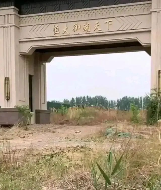十、恒大新乡御湖天下项目:项目投资约为8亿元左右(按照均价7300元/平和总建筑面积11万方估算),打造一个集高层、洋房等多种产品形态于一体的住宅社区。项目占地面积10.86公顷,规划1116户、停车位1500个。项目于2017年开盘销售后就停工了。当时恒大为了这个项目,修建了项目大门,这个金碧辉煌的大门耗资千万而成。项目烂尾之后,整个项目就只有这个大门,剩下的就是一片杂草丛生的荒地,甚至连一块砖,一个桩都没有。