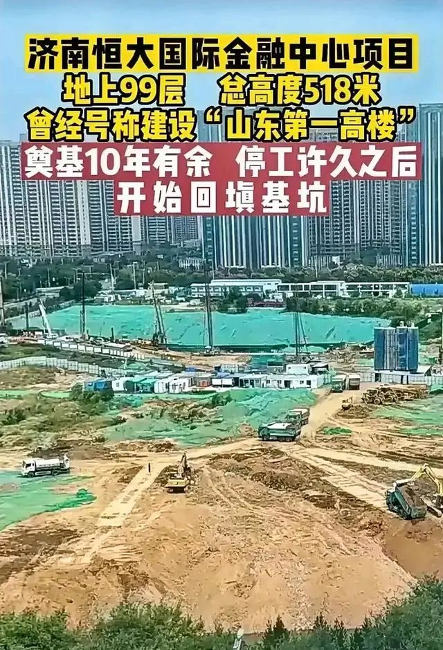 一、恒大济南国际金融中心:项目投资高达250亿元,打造一座集商业、办公、酒店、观光、居住等功能于一体,具有国际水平的超大型城市综合体。项目占地面积10.86公顷,总建面115万方,其中包含一座518米的超高层主塔。项目于2012年3月拿地、12月奠基,之后停工复工多次,至今未能完工。
