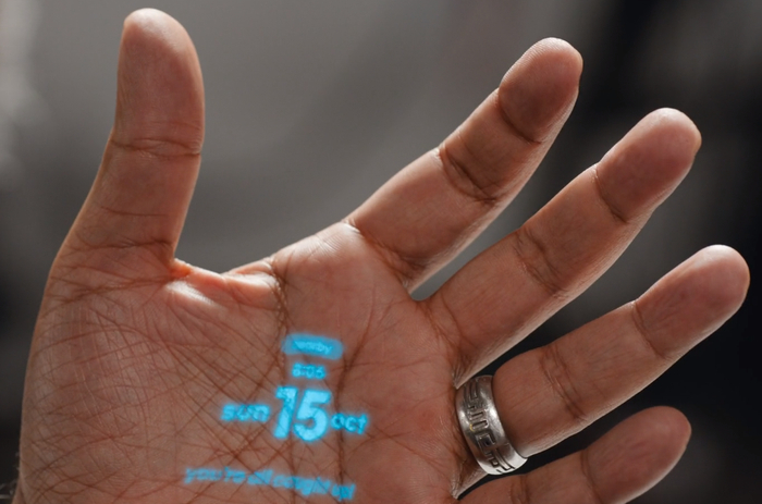 1、无屏幕的全新形态 通过激光投影显示界面