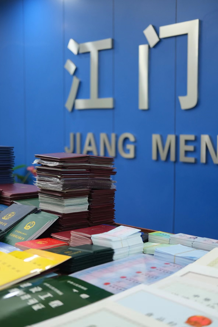 江门公安局收缴的数以万计的“三假”成品,涉及车牌、身份证、房产证等各种门类假证、假章、假公文。