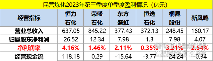 然而,偏长的链条、较为广泛产能扩充、甚至如恒逸石化在地理位置维度较难嫁接的所谓“一体化产能”,反而导致两家企业在边际控费能力上偏弱,财务盈亏在炼化行业大进大出的损益表中更容易被放大,其在今年三季度的业绩上也体现地较为明显。