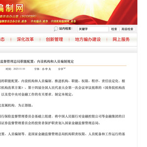 金融监管总局明确15大监管职责,内设机构、人员编制、与其他部门分工等也公布