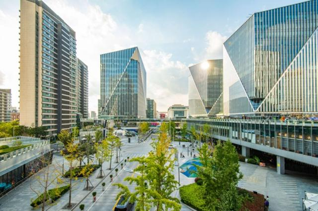 穿过晶耀前滩横亘于钱家桥路的连廊,即可抵达前滩四方城。同样,通过连廊串起来,形成多层次、多路径、多体验的慢行系统。
