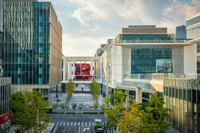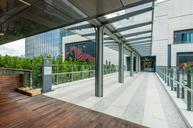 前滩企业天地一、二期,北接陆悦汇,南连L+PLAZA,不同材质的连廊,实现了四座建筑群的 “一键三连”。连廊为白领免去了上上下下以及等红绿灯的烦恼,同时还提供了在4.5米高度看前滩的独特视角。
