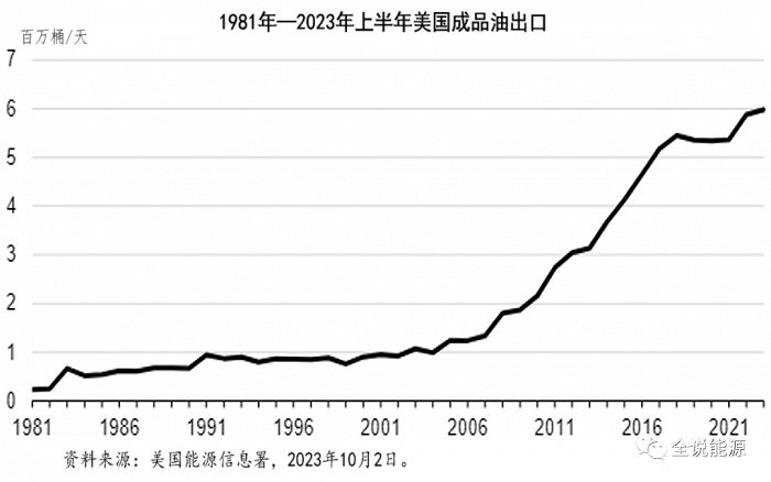 进入2023年以来,得益于较高的油价和不改改善的生产效率,美国石油勘探开发领域已完全从新冠疫情的冲击中恢复,原油产量超过2019年的水平并创下了新高,原油和成品油出口数量创下了新的历史纪录,并于当年8月历史上首次成为美国最大的出口商品。